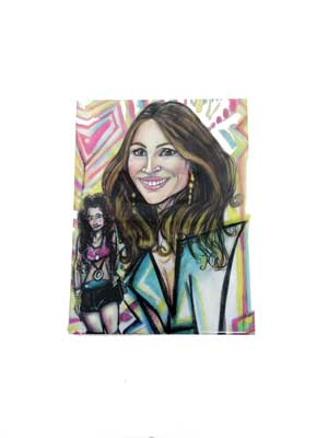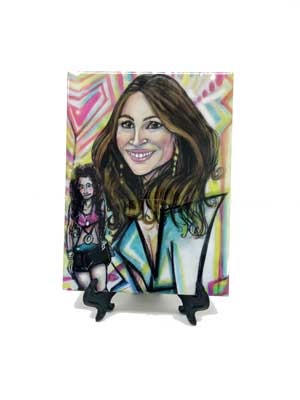 Reproduccion caricatura de la actriz Julia Roberts en Azulejo de 15*20 Cm. de alta calidad y duración.Incluye soporte.