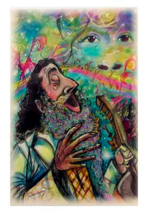 Reproduccion caricatura de Manuel Molina (Flamenco) en Madera Premium de 10 mm. de grosor y medidas de 30*20 m.Incluye soporte.