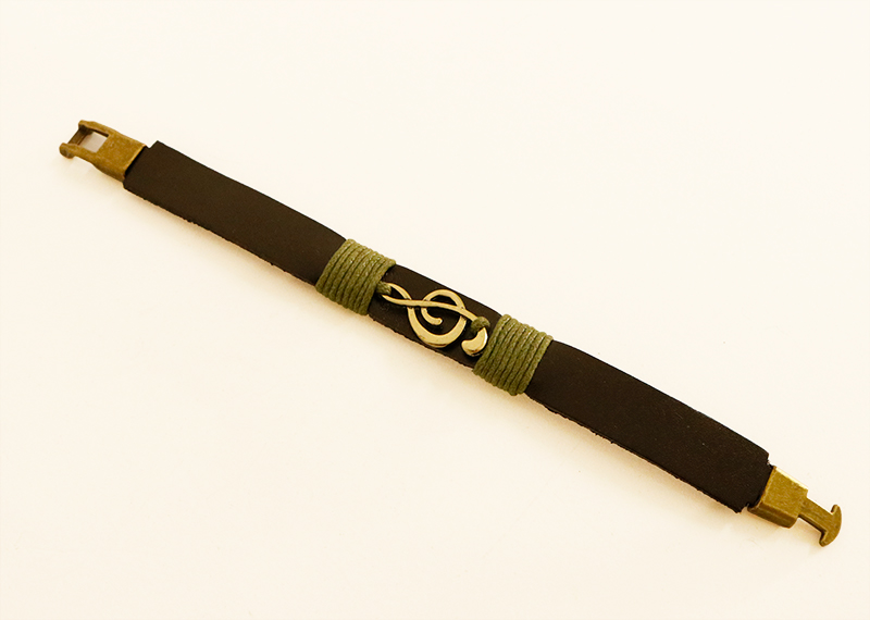 Pulsera de imitación a cuero con clave de sol de metal.